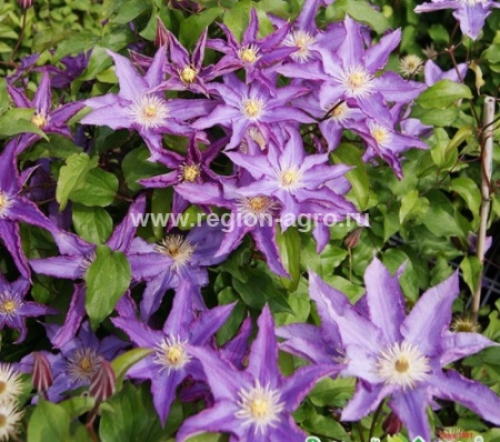 Один из наиболее популярных в мире сортов с голубовато-фиолетовыми цветками. Цветет обильно в июне-июле. Высота растений 2-3 м. Выведен в Польше.