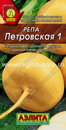 Раннеспелый сорт (от полных всходов до технической спелости – 47-55 дней), с дружным формированием урожая. Рекомендуется для выращивания в открытом грунте. Корнеплоды округлые, гладкие, массой 120-140 г. Мякоть желтая, очень сочная, нежная. Вкусовые качества отличные. Используется для потребления в свежем виде и различной домашней кулинарии. Корнеплоды хорошо транспортируются и хранятся. Урожайность 2,5-3,0 кг/м2. Для летнего потребления сеют рано весной, для осеннего и зимнего потребления— в середине июля