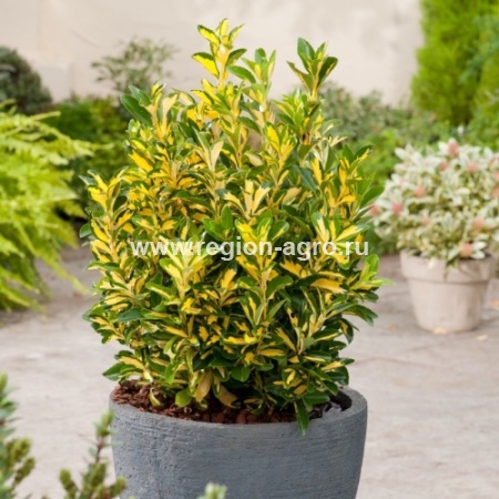 Вечнозеленое декоративно-лиственное растение. Лист светло-желтый с зеленой каймой. Легко поддается стрижке, ему можно придать любую форму. Высота взрослого растения до 150 см.