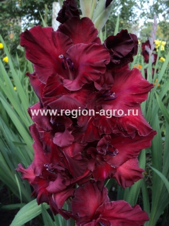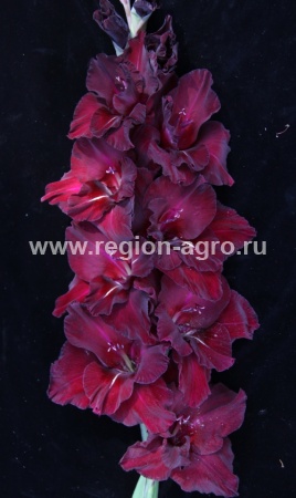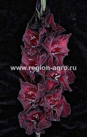 Великолепныйсорт черно-бордового гладиолуса. Цветки очень крупные, бархатные, устойчивые к непогоде. Колос высокий, прочный, двурядный, более 20 бутонов, 9 открыты одновременно. Подходит для срезки.