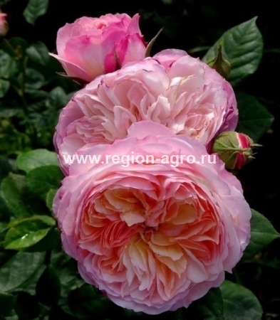 Цветки крупные, абрикосово-розовые, махровые. Высота куста 120-150 см. Аромат сильный фруктовый. Кусты густые, сильнорослые, компактные, правильной формы.