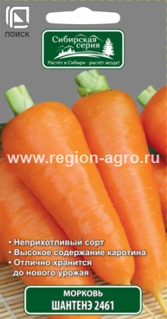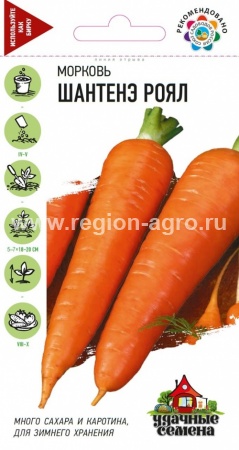 " Cреднеспелый сорт (период от полных всходов до технической спелости 80-110 дней). Один из самых лучших сортов с повышенным содержанием каротина и сахаров. Как нельзя лучше подходит для диетического и детского питания. Корнеплоды удлиненно-конические, массой 100-250 г, ярко-оранжевые, с небольшой сердцевиной. Мякоть сочная, нежная, очень сладкая и ароматная. Отличная лежкость. Сохраняет питательную ценность вплоть до нового урожая. Далеко не многие сорта и гибриды могут составить ему конкуренцию. Дружное формирование урожая в любое лето и в любом регионе. "