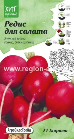 Самый ранний урожай изящных корнеплодов. Корнеплоды один в один! Период от всходов до сбора корнеплодов 17-20 дней. Корнеплоды ровные, цилиндрические, верхняя часть ярко-розовая, массой 16-18 г. Мякоть белая, плотная, приятного слабоострого вкуса. Сорт устойчив к цветушности.