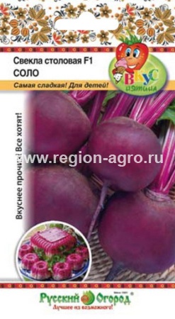 Среднеранний (100-105 дней от всходов до технической спелости) гибрид. Подходит для получения ранней пучковой продукции и выращивания на хранение. Гибрид накапливает максимальное количество сахаров в корнеплодах. Не формирует кольца даже при засухе и резких перепадах температуры. Розетка листьев полупрямостоячая. Корнеплоды округлые, очень гладкие, одинаковые, массой 220-350 г. Мякоть темно-красная, нежная, вкусная, сладкая. Рекомендуется для использования в свежем и вареном виде. Выращивают прямым посевом в открытый грунт на глубину 2-4 см по схеме 8-10x25 см. После посева почву желательно прикатать.